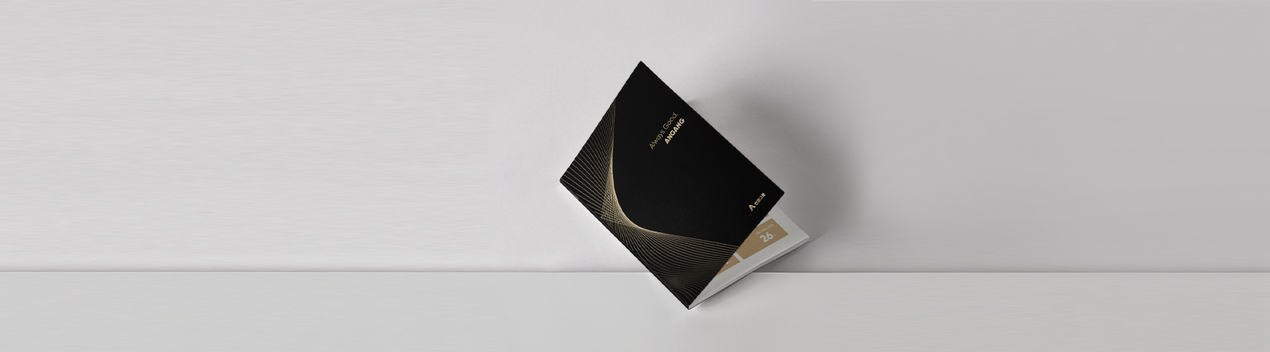 안강그룹의 브로슈어로서 블랙과 골드컬러를 활용하여 세련되고 고급스러운 느낌이 들도록 작업하였으며,